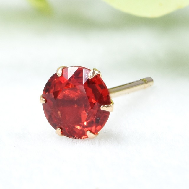 ほんのりオレンジがかった赤色が美しい、レディッシュカラー サファイア。 9月の誕生石。 透明感にあふれ、艶やかにきらめく一石です。 石の輝きを引き立てるよう、シンプルなシングル(片耳用)ピアスに仕立てました。 素材はK18イエローゴールド。 キラキラときらめくシンプルピアス。 約5mmの大きめサファイアが、耳元で華やかな存在感を放ちます。 【商品情報】 ■石名:カラーサファイア(約5.3mm) ■素材:K18イエローゴールド ■ピアスポスト:太さ約0.7mm 長さ:約10mm ■キャッチ:シリコンキャッチ ■K18の刻印入り 【備考】 *写真の作品を即納です。 *シングル(片耳用)ピアスです。 *手作りの為、サイズは前後する場合がございます。 *カラーストーンのインクルージョン(内包物) 微細な傷は天然石の証です。また、画面で見る色合いと多少異なる場合がございます。 ご理解頂きご購入ください。 *こちらの商品は当店の他ショップと共有しているため、ご注文時、購入確定ではございません。ご注文後、当店からメールにて在庫状況を改めてお知らせいたします。