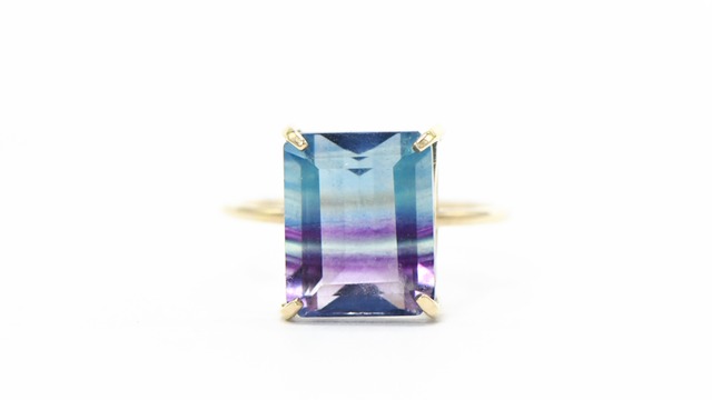 濃いブルーカラーからバイレットカラーのグラデーションが楽しめる、フローライト。 自然の神秘を感じる一石。 透明度が高く綺麗です。 K10イエローゴールドで、シンプルなデイリーリングに仕立てました。 シックな大粒フローライトです。 【商品情報】 ■石名:フローライト(約9×11mm 約5.00cts) ■素材:K10イエローゴールド ■リングサイズ:10-16号 ■リング幅:約0.9-1.1mm ■産地:アフリカ ■K10の刻印入り ■作品No.BW044-28BS-YRG-124ACKEH 【備考】 *受注加工のため約14日(土日祝日を除く)で完成後、お届けします。 *手作りの為、トップサイズ、主石サイズは前後する場合がございます。 *カラーストーンのインクルージョン(内包物)、微細な傷、カット、大きさ、輝き、色あいの違い等は天然石の証です。 また、画面で見る色合いと多少異なる場合がございます。 ご理解頂きご購入ください。 *天然石のため、カラー、インクルージョン(内包物)や傷等、個体差がありますが、同品質のものを厳選しております。 *こちらの商品は当店の他ショップと共有しているため、ご注文時、購入確定ではございません。ご注文後、当店からメールにて在庫状況を改めてお知らせいたします。