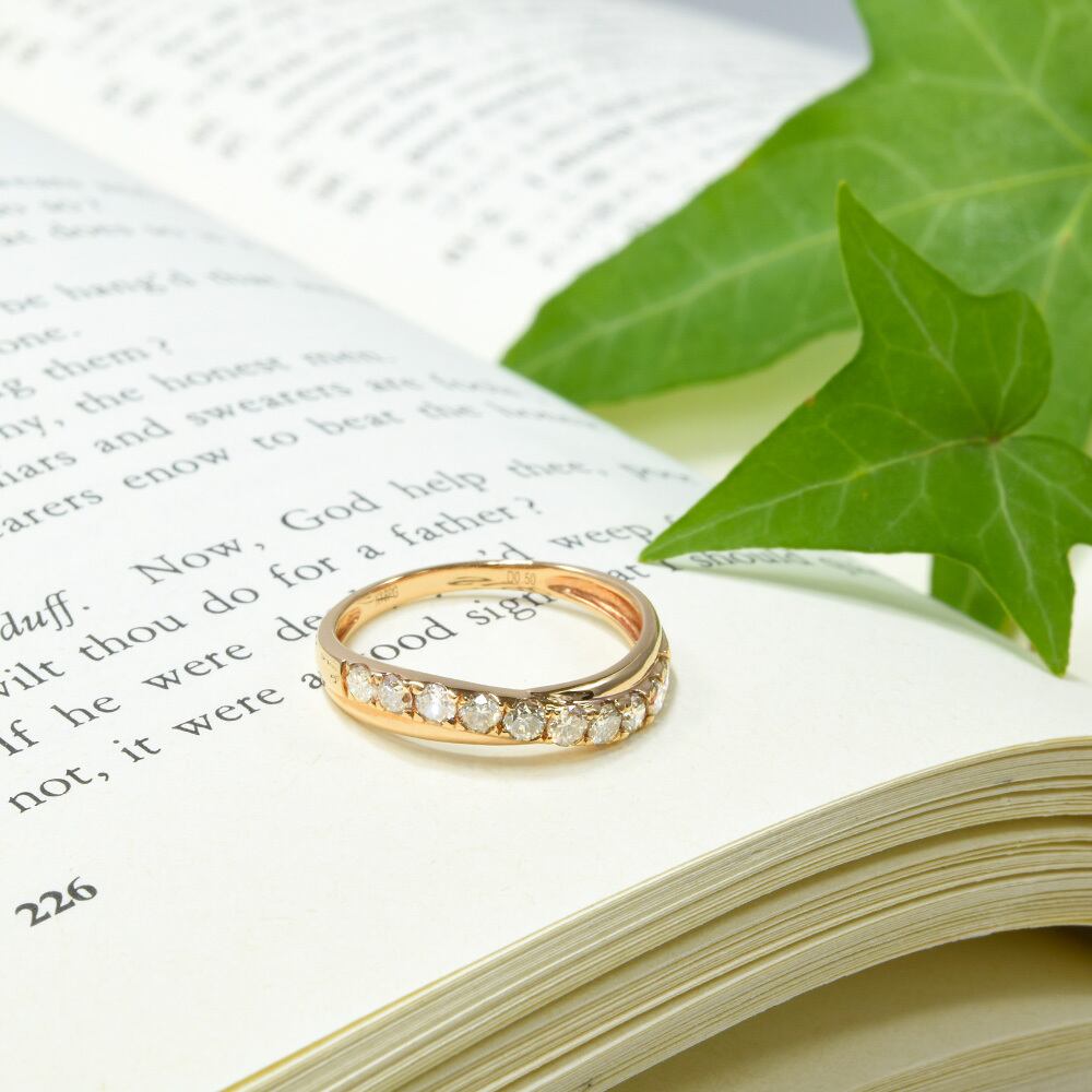 流れるようなダイヤモンドのラインが指に優しく寄り添う、ウェーブデザイン。