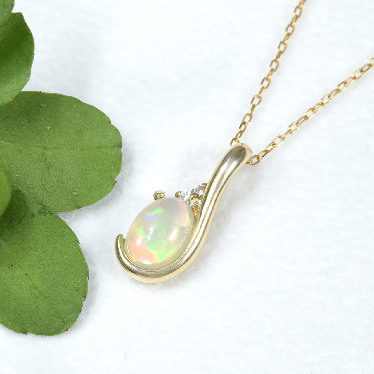 オパールの上には可憐にダイヤを添えて、 K10イエローゴールドでペンダントトップに仕立てました。