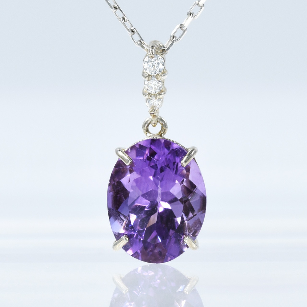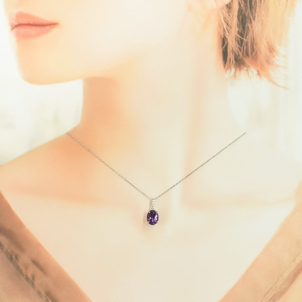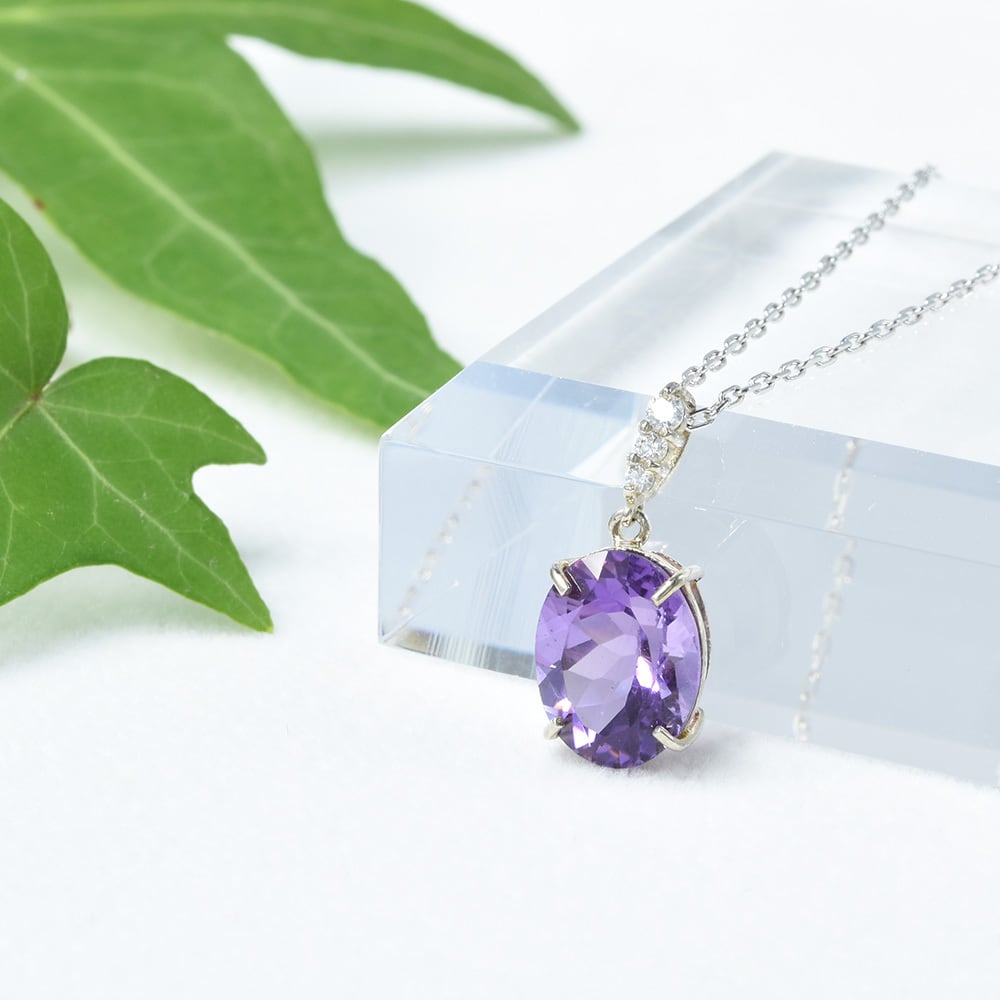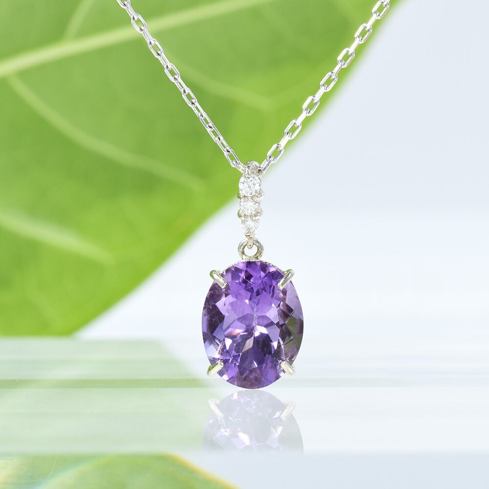 胸元で上質なアメシストが艶々と煌めきます。