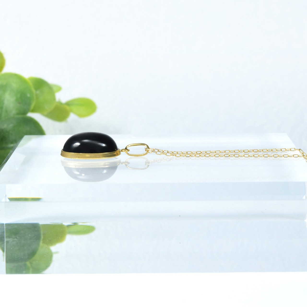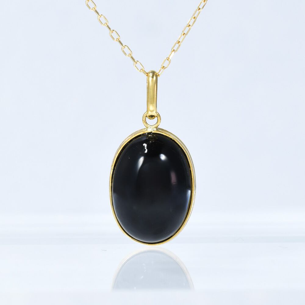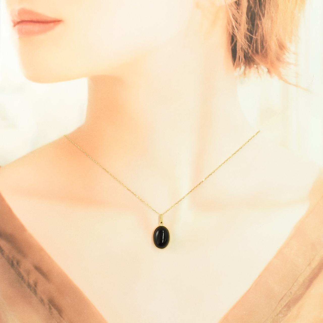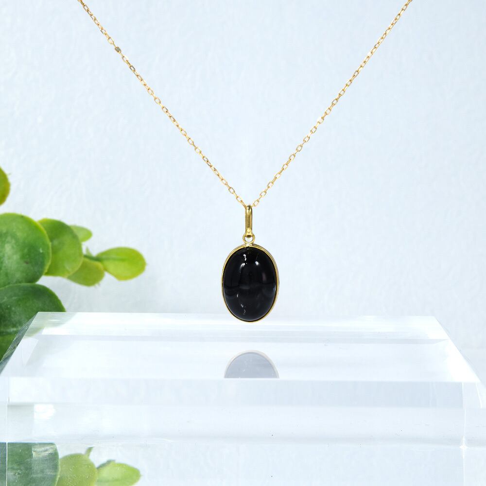 漆黒オニキス×イエローゴールドが、デコルテで上質な存在感を放ちます。