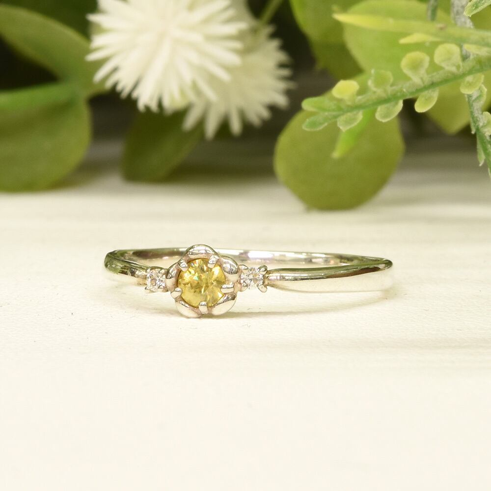 中央のスフェーンをよりいっそう引き立て、お手元を明るく彩ります。