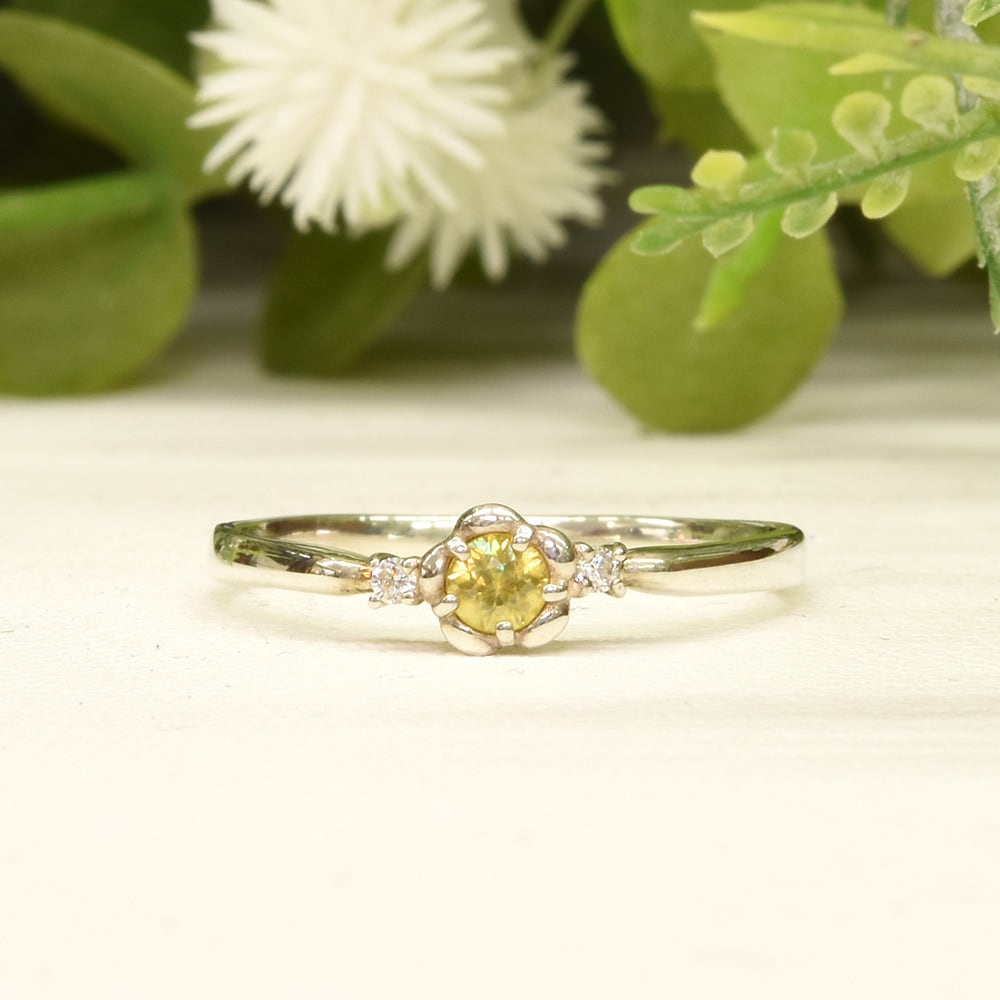 花の両脇にはキュービックジルコニアを添えました。