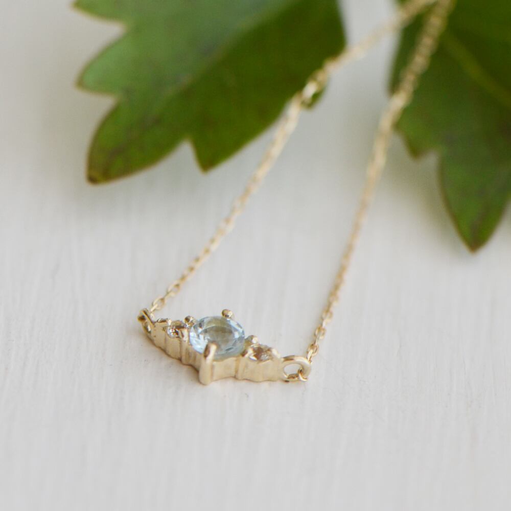 ラウンドカットのひと粒を【tria-トリア-】ペンダントに仕立てました。