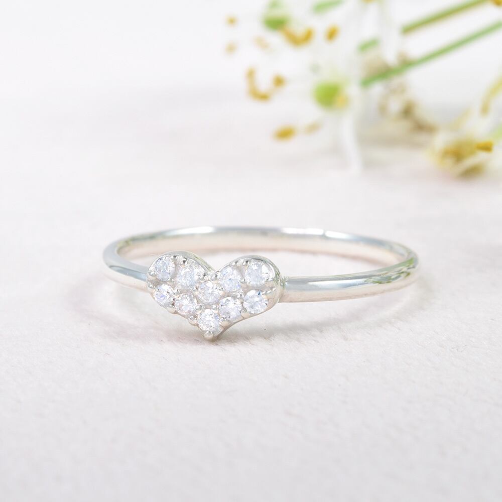 タイニーな極小キュービックジルコニアをぎっしりと詰め込んで、大人なハートリングに仕立てました。