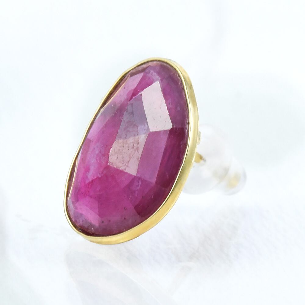 ころんっと可愛いフリーカットに合わせて、K18イエローゴールドで、スタッドピアスに仕立てました。